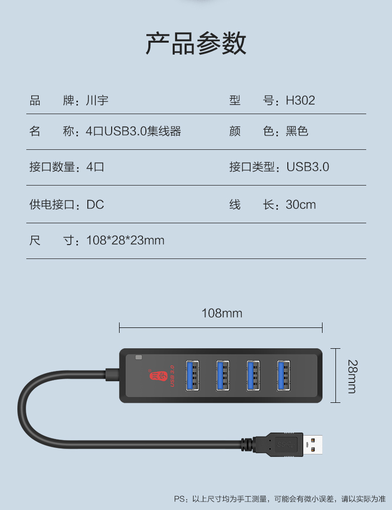 USB3.0高速四口分线器H302-30D