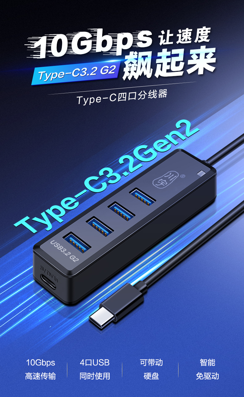 • 商品名称:川宇USB3.2Gen2 四合一分线器