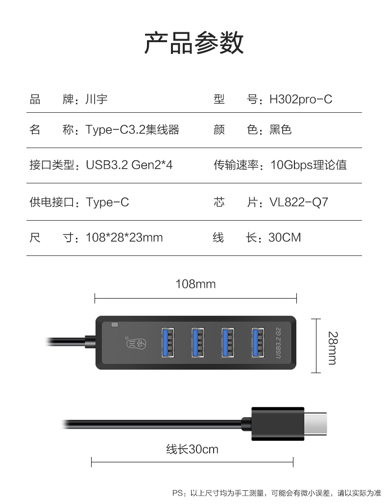 USB3.2Gen2 四合一分线器 H302PRO-30