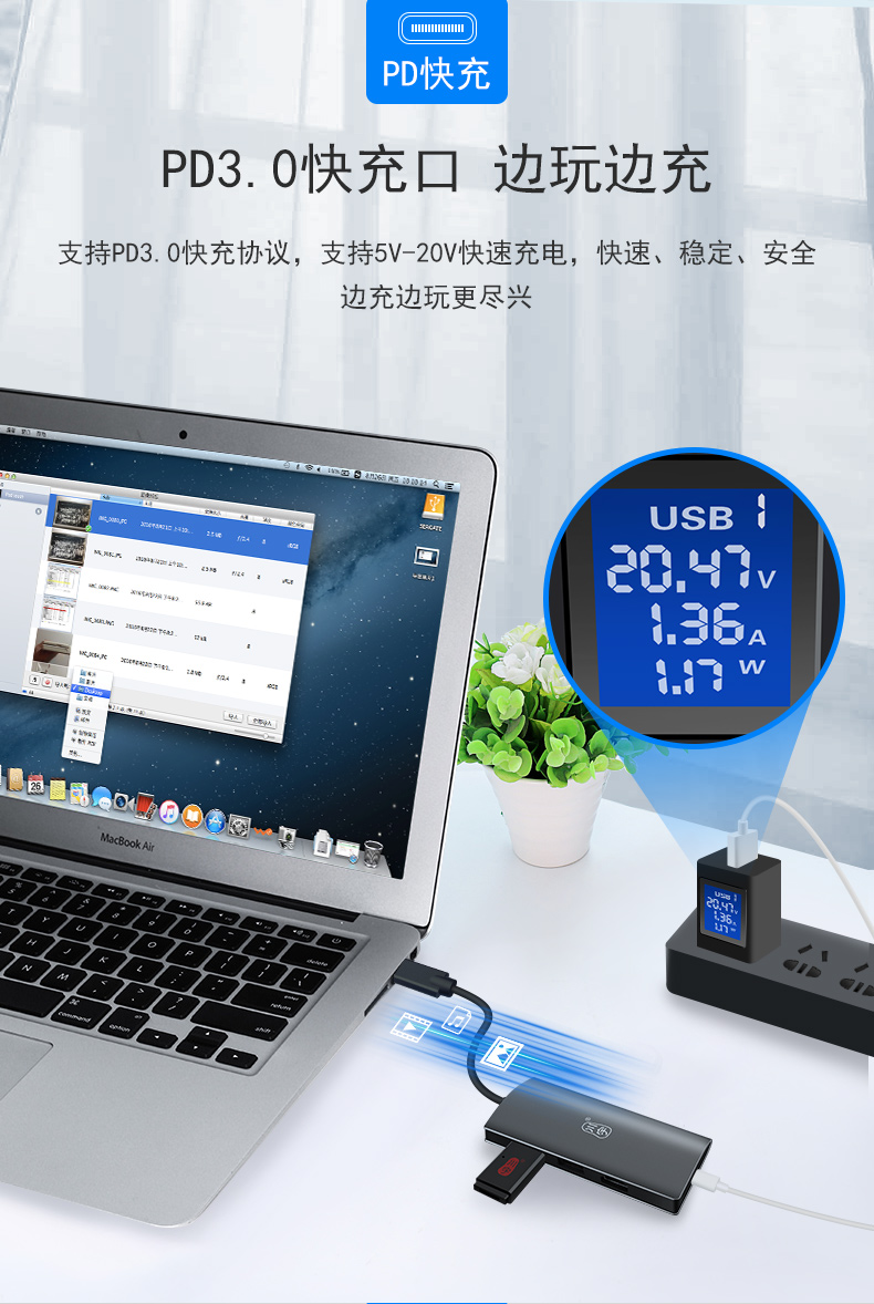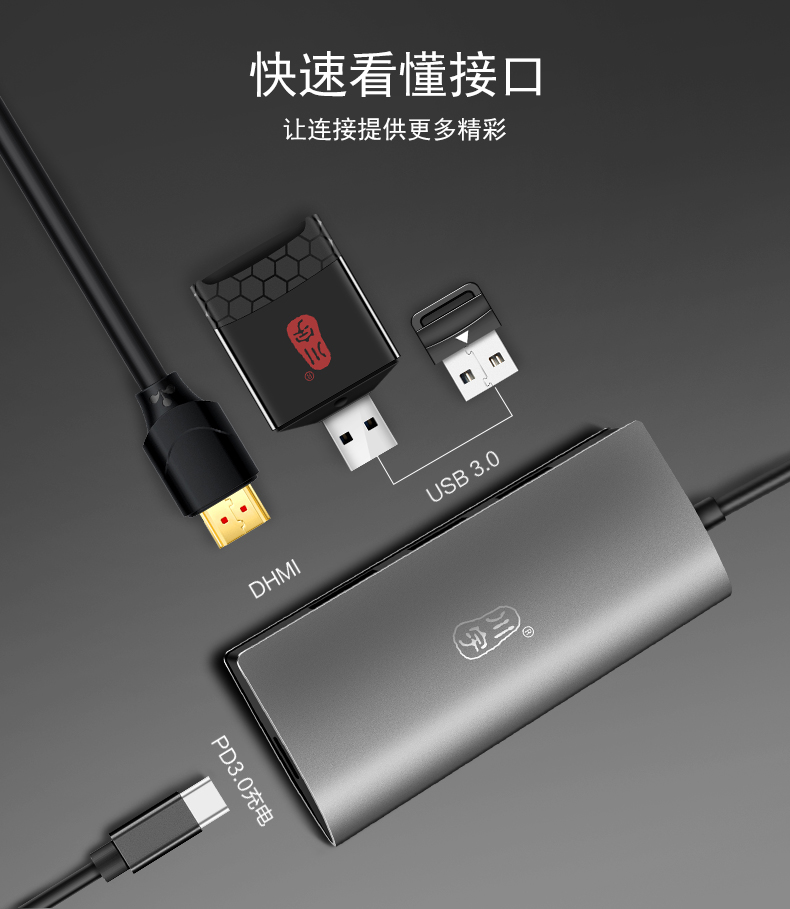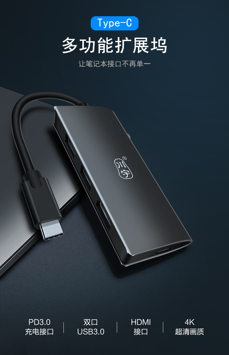 首页 产品展示 > 川宇 Type-c转USB-C扩展坞 +HDMI接口+pd充电 H331