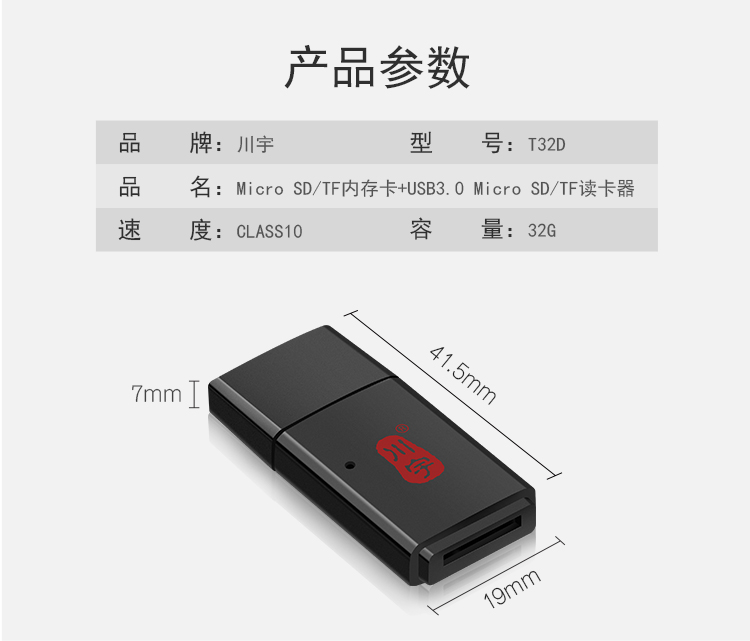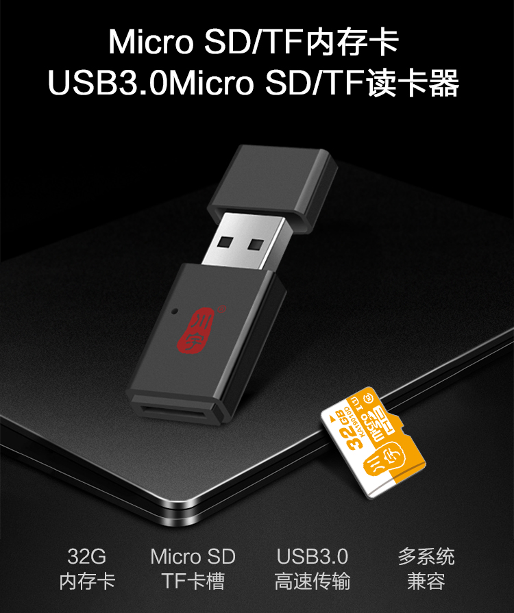 首页 产品展示 > 川宇 32G TF(MicroSD)存储卡+USB3.0 Micro SD/TF读卡器 T32D