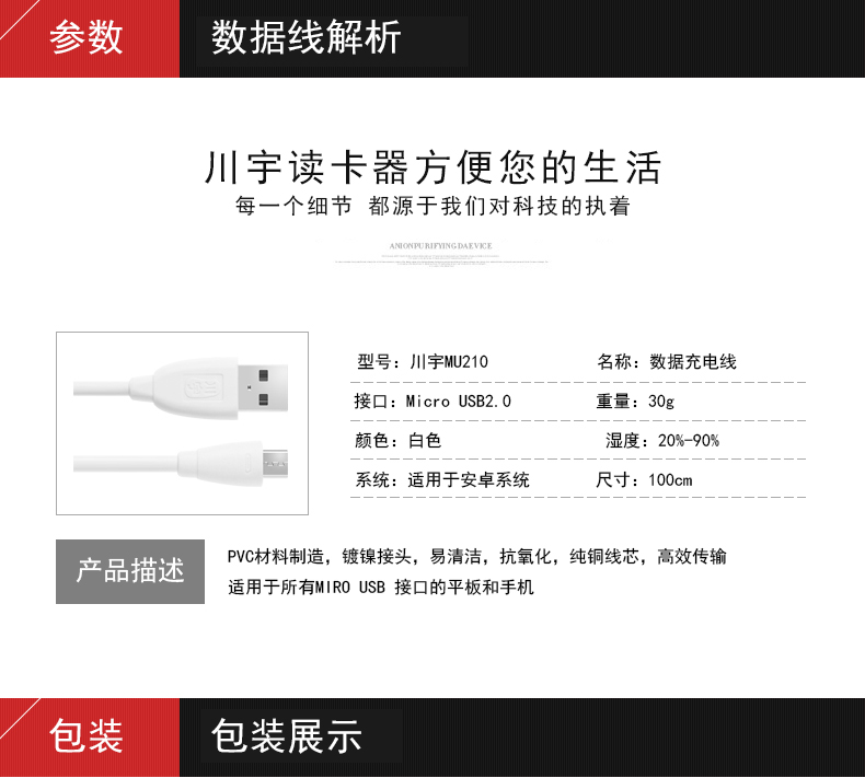 首页 产品展示 > 川宇 Micro USB安卓手机数据线 MU210