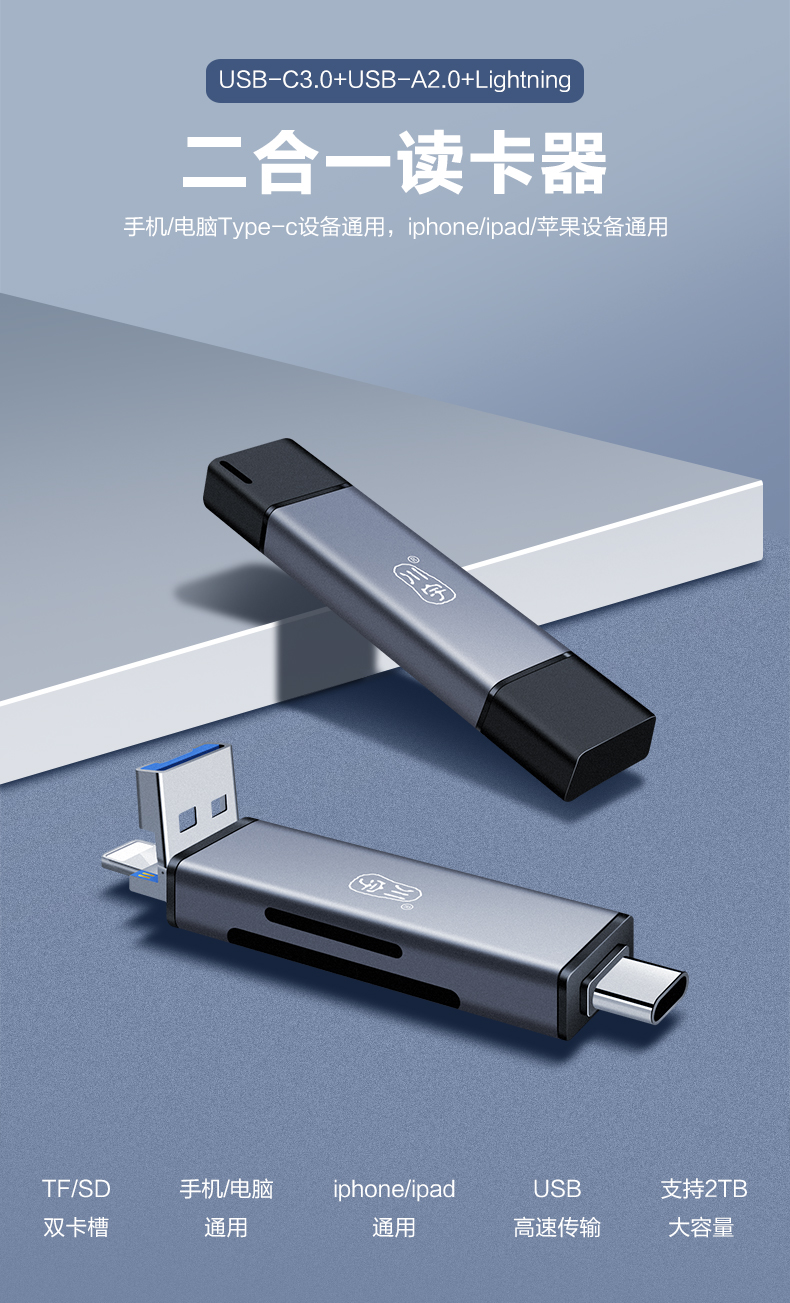 首页 产品展示 > Type-c3.0多合一高速读卡器C350TL